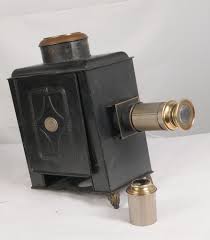The Tepaphone is described as a framework holding multiple optic lenses mounted in front of a light source, and a separate section consisting of a flat holder surrounded by copper wire coils with a copper plate in the center, on which the light was projected. From this simple description, and knowing what kind of technology was available at that time, the Tepaphone was probably a modified “magic lantern“, an early kind of slide projector that was used extensively by Masonic lodges in the 19th and early 20th centuries. The first versions had either a built-in oil or alcohol lamp with wick, or separate lamp was placed inside the box to provide a light source. Later versions used electric lamps, and eventually evolved into the optical slide projectors of the late 20th century.