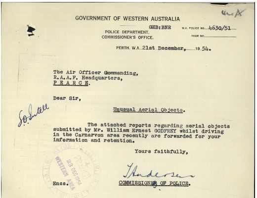 Australian UAP researchers have long been aware that in the 1950’s and 1960’s, the RAAF when investigating reports of UAP, used the resources of state police forces to interview witnesses. The evidence for this is to be found on RAAF “Unusual Aerial Sightings” files, held by the National Archives of Australia. However, until now, no one has ever located a whole state police force file on the subject.