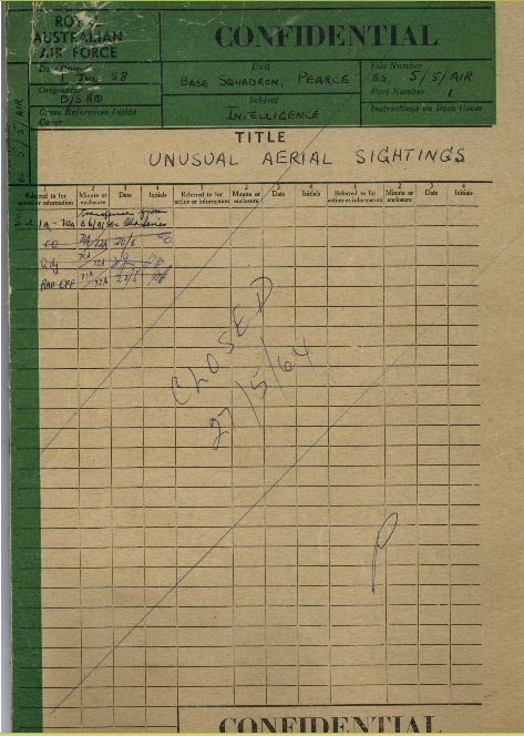 A check of National Archives of Australia file series PP 474/1 control symbol 5/5/Air, titled “RAAF Pearce, Unusual Aerial Sightings 1951-1957 reveals the originals of WA Police file documents, and additional RAAF correspondence, in the following cases:
